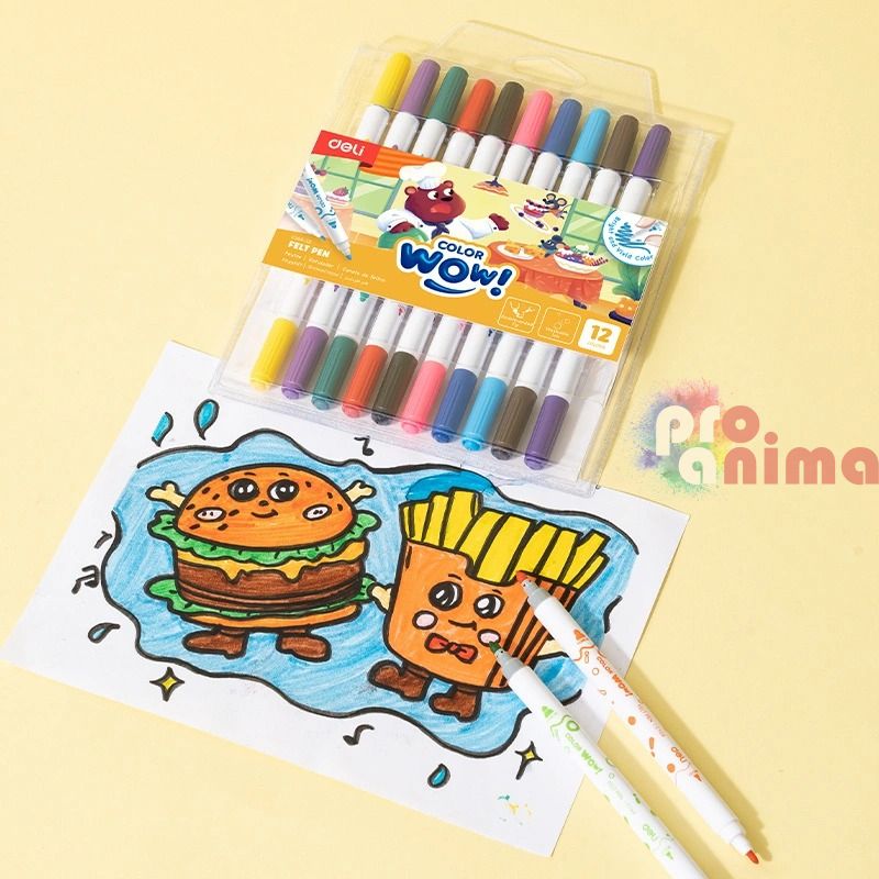 Двувърхите флумастери Deli Color Wow са изключително удобни за оцветяване на големи повърхности, както и за рисуване на фини и тънки линии, благодарение на двете различни големини на писеца.