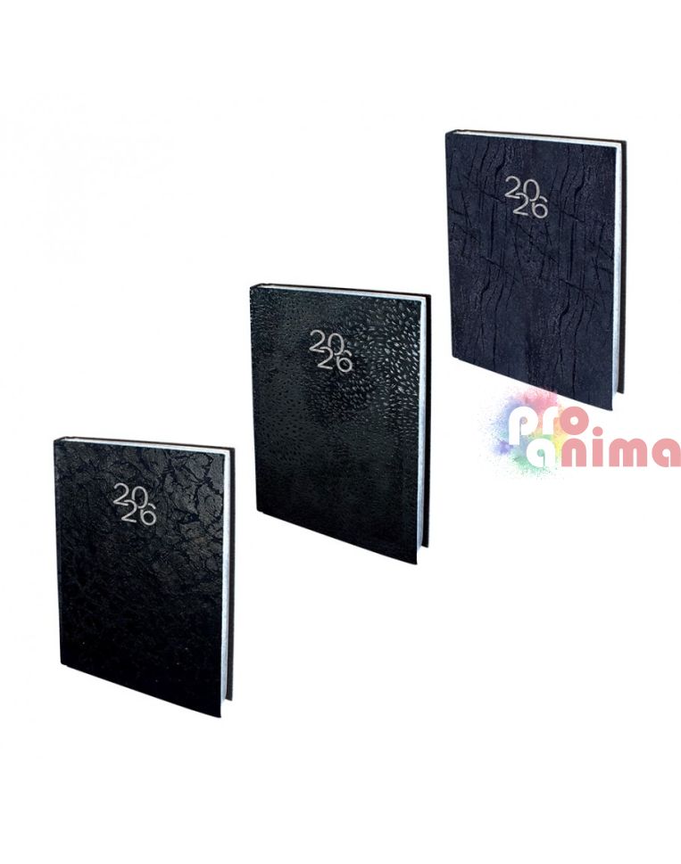Начало Канцеларски материали Бележници, тефтери, органайзери Бележник с дати 2026, 14 х 20 cm, твърда корица черен набук, сребърна порезка, 168 л., в кутия