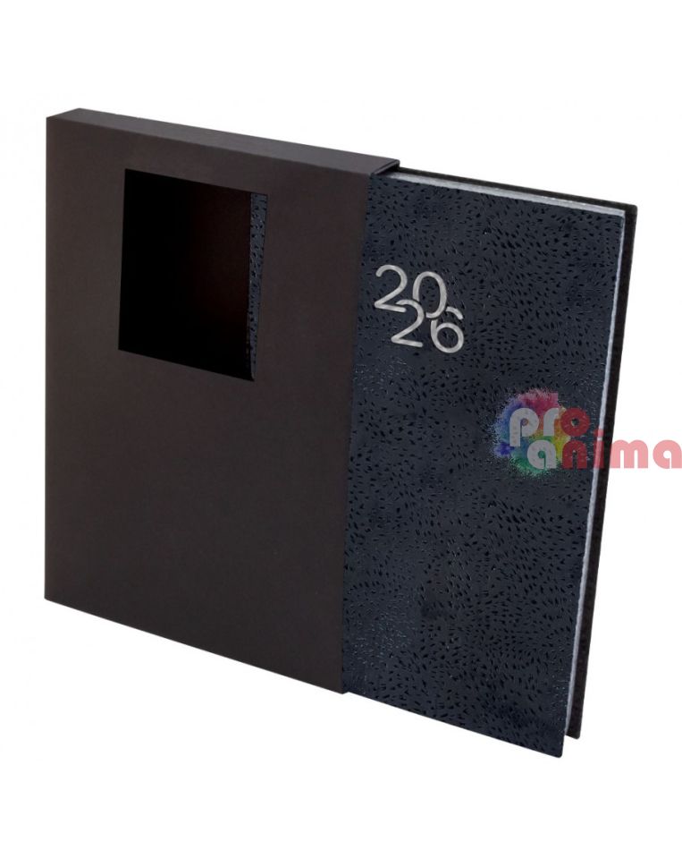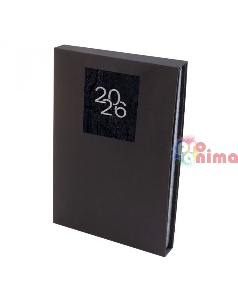 Бележник с дати 2026, 14 х 20 cm, твърда корица черен набук, сребърна порезка, 168 л., в кутия