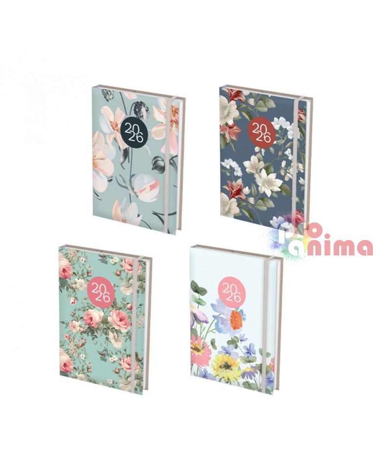 Начало Канцеларски материали Бележници, тефтери, органайзери Бележник с дати 2026, 14 х 20 cm, Flowers, 168 л., с ластик