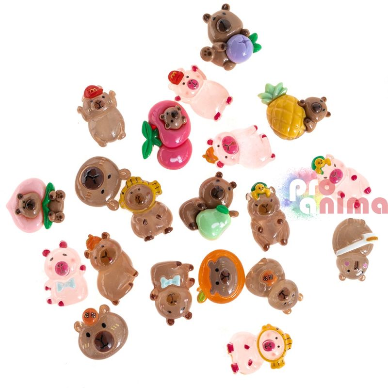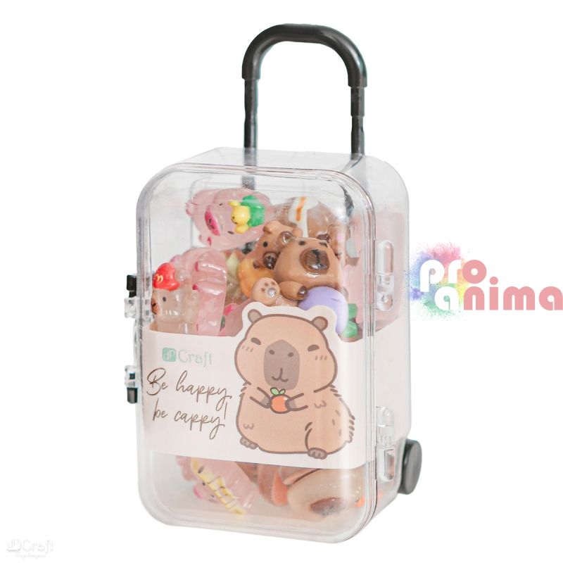Прозрачен мини куфар пълен с 20 бр. очарователни капибара фигурки, в пастелни цветове. Те са подходящи както за подарък за деца, така и като очарователен декоративен елемент в скрапбукинг проекти.