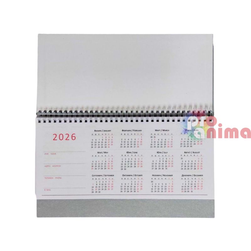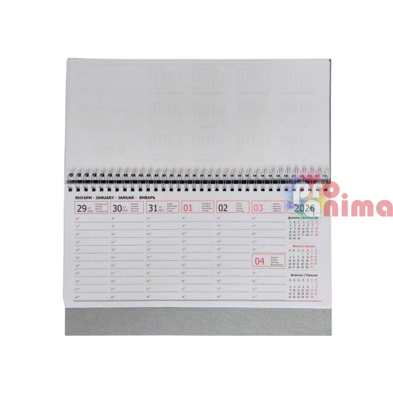 Настолен Календар-Бележник с дати и часове: Планер 2026, твърди корици металик