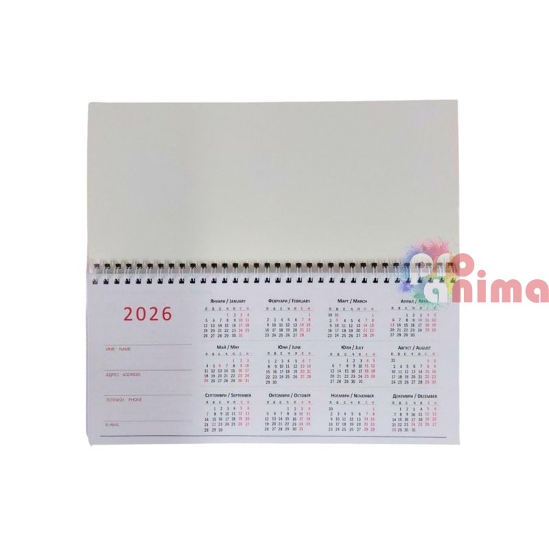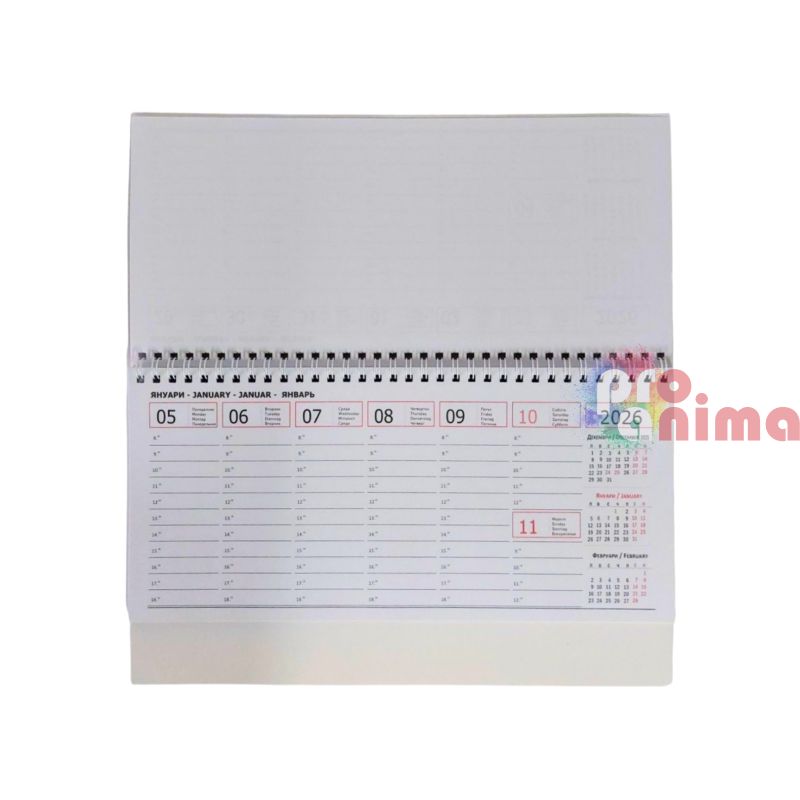 Начало Канцеларски материали Бележници, тефтери, органайзери Настолен Календар-Бележник с дати и часове: Планер 2026 за графици, ламинат