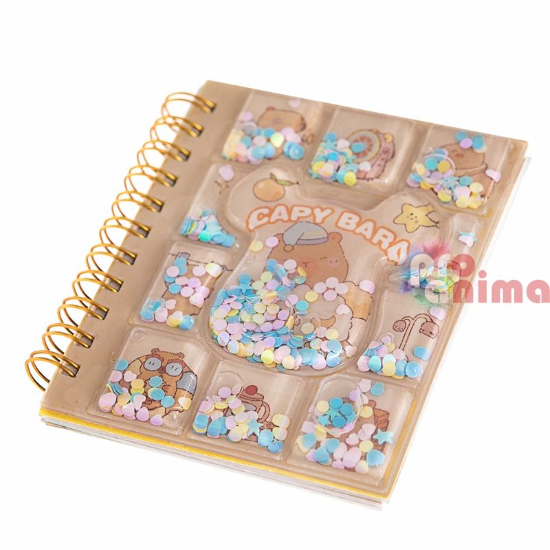 Бележник Капибара, с корица с вода и цветни конфети, 52 листа, 11x9 cm