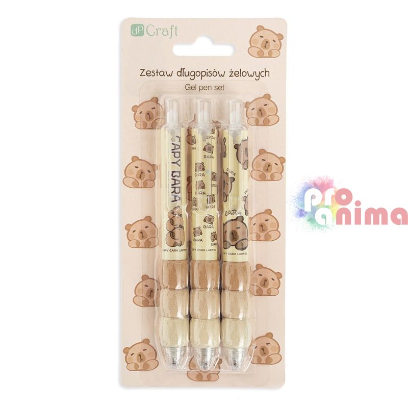 Комплект от 3 бр. черни химикалки с мотив Капибара- чудесно допълнение към ученическите принадлежности на Вашето дете.