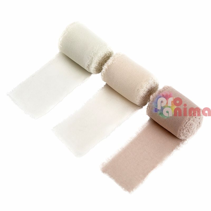 Комплект от 3 бр. шифонени панделки в нежни нюанси на кремаво и бежово. Панделките са перфектен декоративен акцент в опаковането на подаръци, създаване на поздравителни картички, украсяване на скрапбук проекти, централни декорации и др.