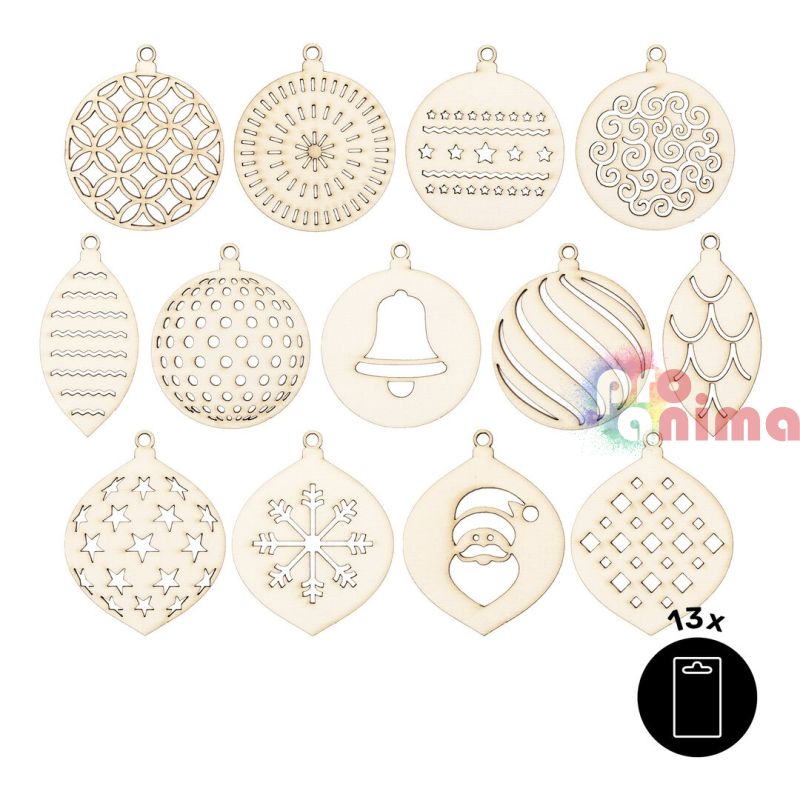 Креативният комплект от дървени коледни фигурки ще внесе великолепие във всеки крафт проект, посветен на зимата и коледните празници. Комплектът съдържа различни коледни фигурки, които могат да се използват при създаването на коледни декорации, за скрапбук проекти или албуми. Коледните фигурки са с отвор, през който лесно можете да прокарате въженце и така да създадете невероятна украса за коледната елха или декорация за дома.