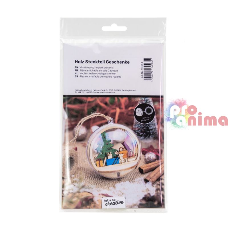 Дървени фигури за прозрачни топки, ф7.4 cm, Елха и коледни подаръци