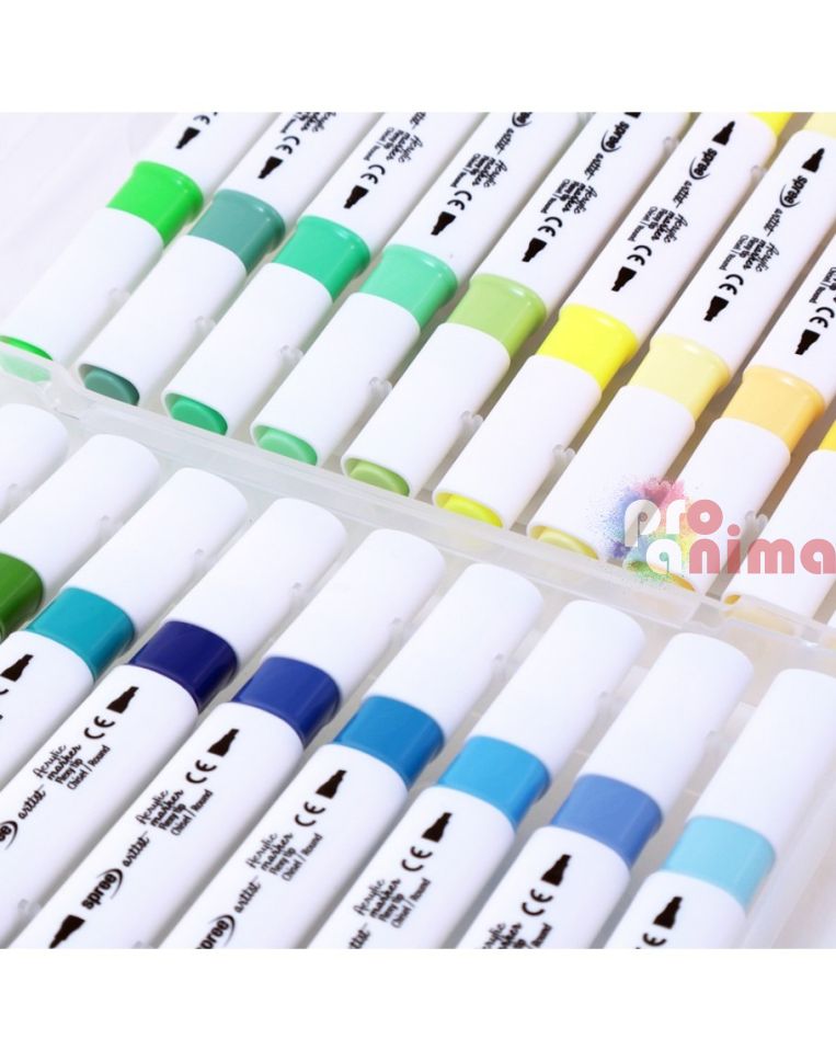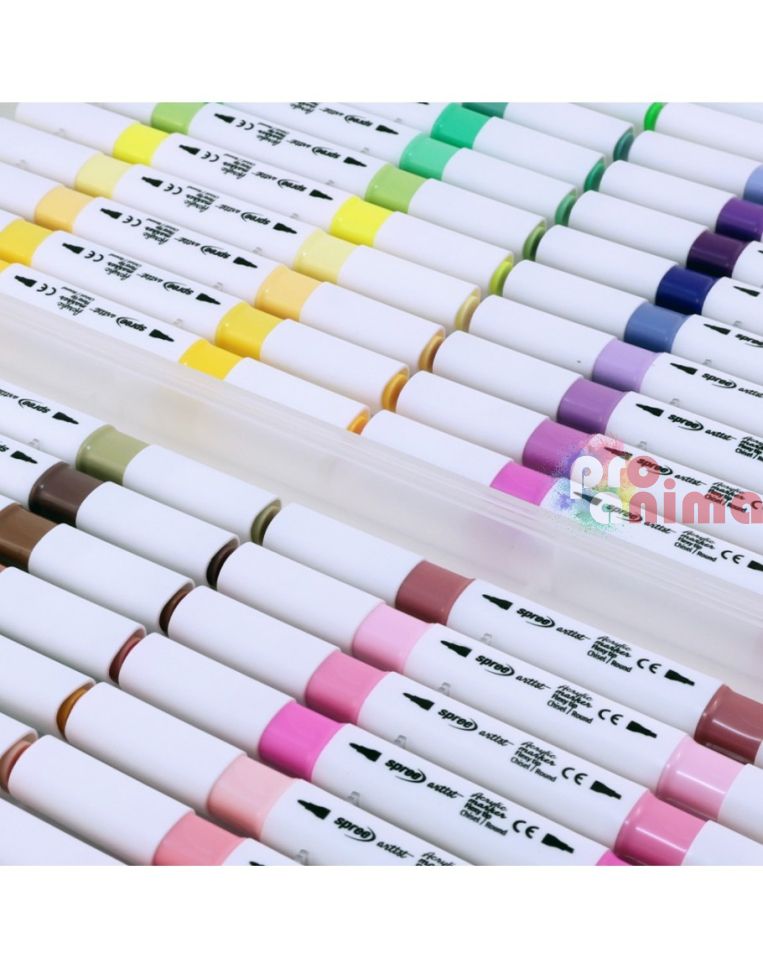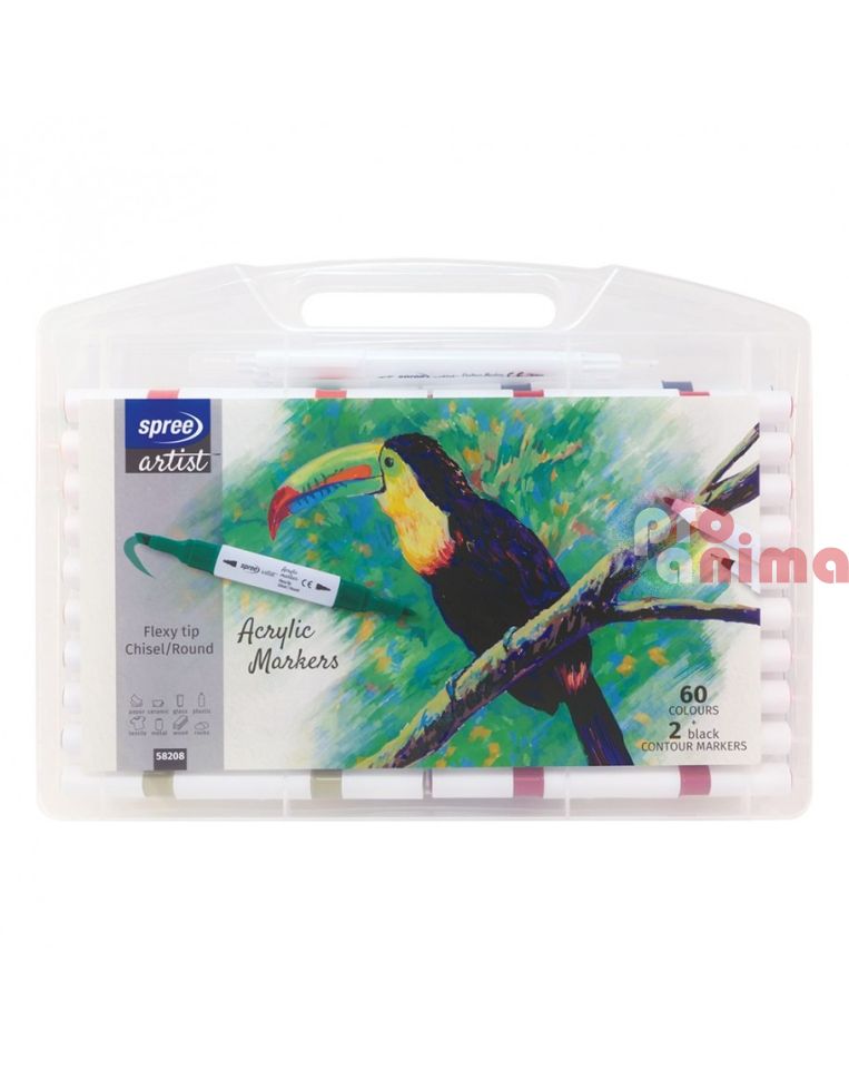 Aкрилни маркери Spree Artist Двувърхи Flexy Chisel/Round Tip, 60 цвята + 2 контурни