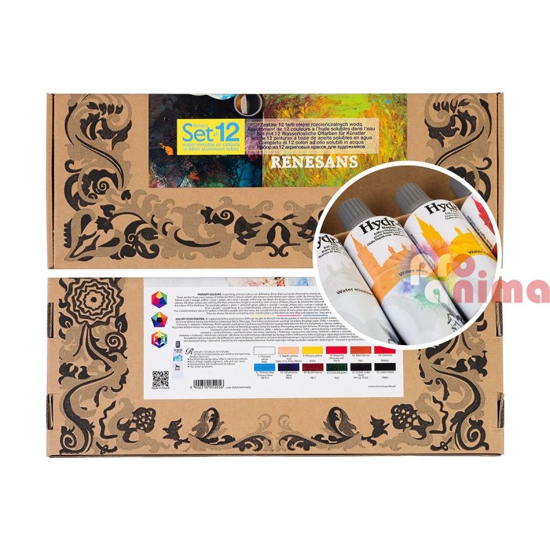 Комплект маслени водоразтворими бои Renesans Hydr-Oil 12 цвята x 60 ml