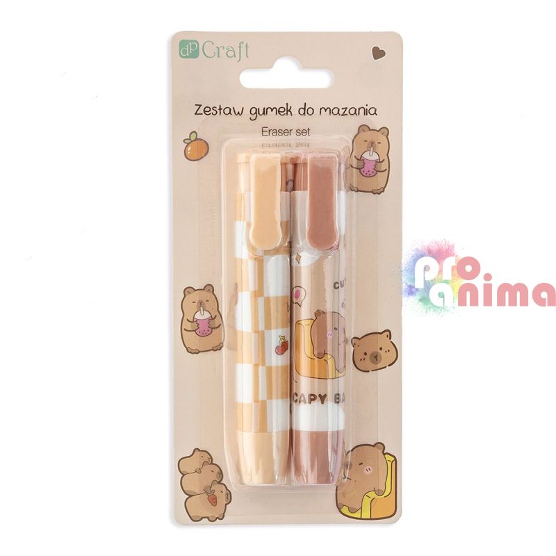 Комплект от гумички с капибара мотив, под формата на химикалки.