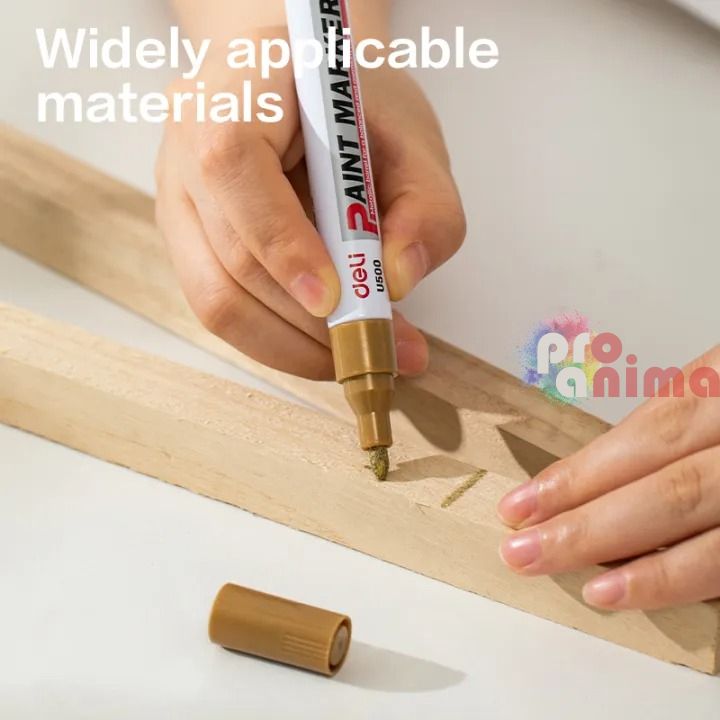 Маркерът Deli EU-500 е подходящ за писане върху различни повърхности- стъкло, метал, фолио, пластмасови изделия, снимки, керамика, текстил и др.