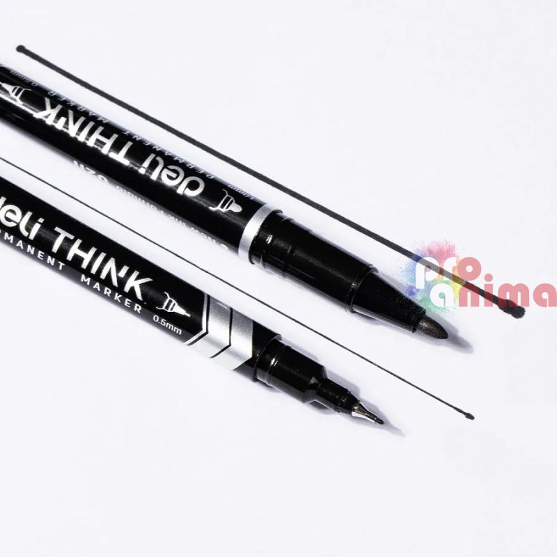 Перманентен маркер Deli Think EU211-BK Двувърх 0.5 mm-1 mm Черен