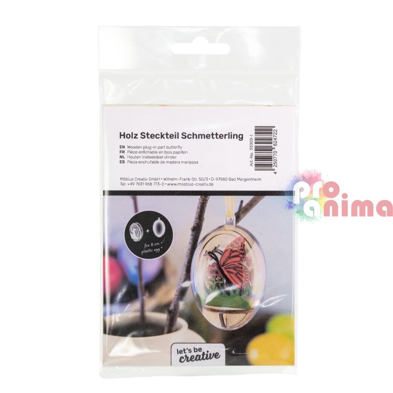 Дървени фигурки за прозрачно яйце, Пеперуда ф7.6 cm