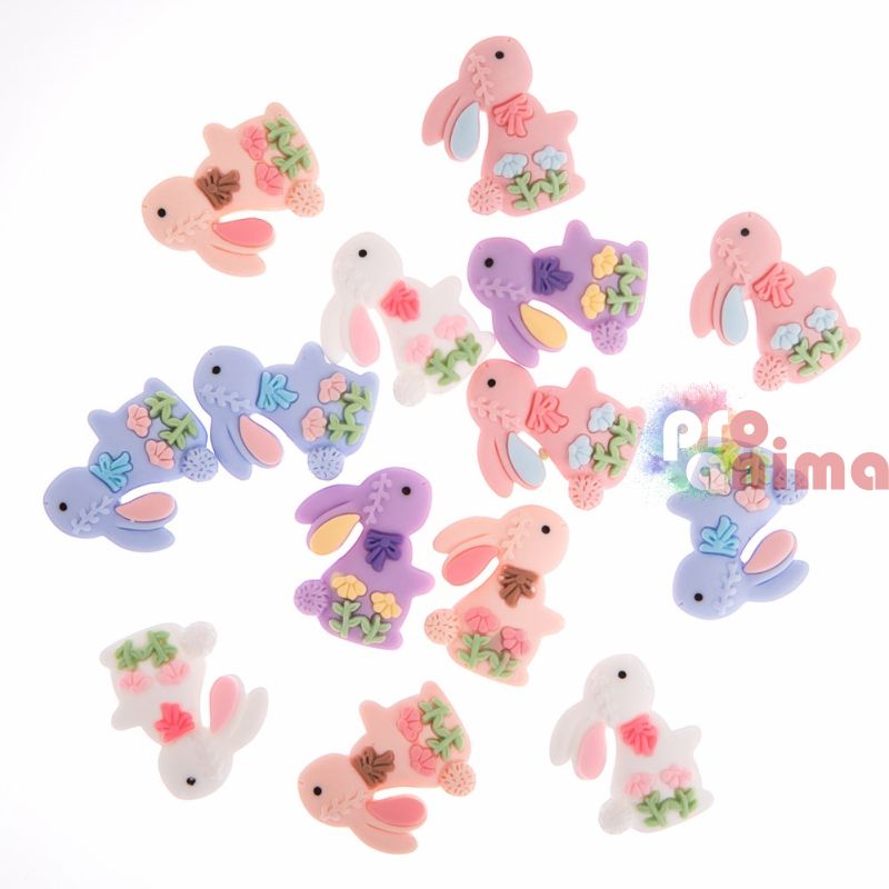 Фигурки за декорация от синтетична смола/резин 3D Зайчета с цветя, 15 бр.