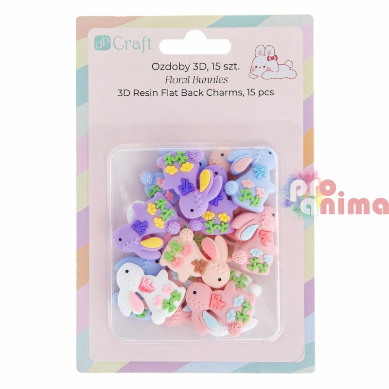 Очарователни 3D фигурки с цветни зайчета, които ще са красиво допълнение към вашите дизайнерски и скрапбук проекти. Идеални са при създаването на великденски декорации, картички, гривни, ключодържатели, аксесоари за коса, бутилка за вода, при опаковане на подаръци и др.