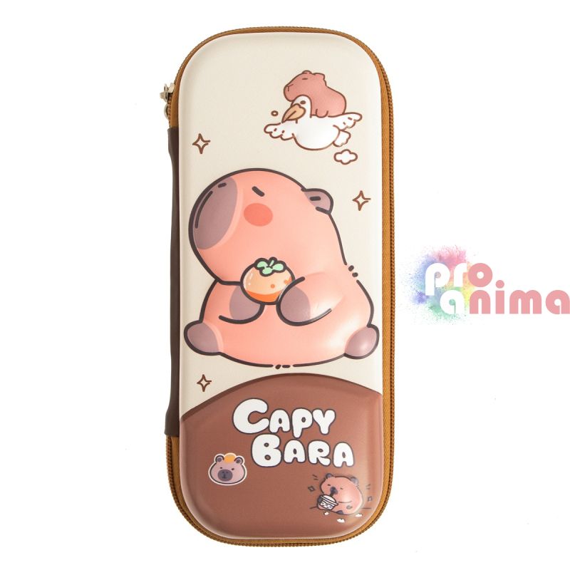 Твърдият несесер (тип черупка) с 3D капибара е незаменим аксесоар, готов да побере най-необходимите училищни принадлежности - химикалка, молив, гумичка, ножичка и др.