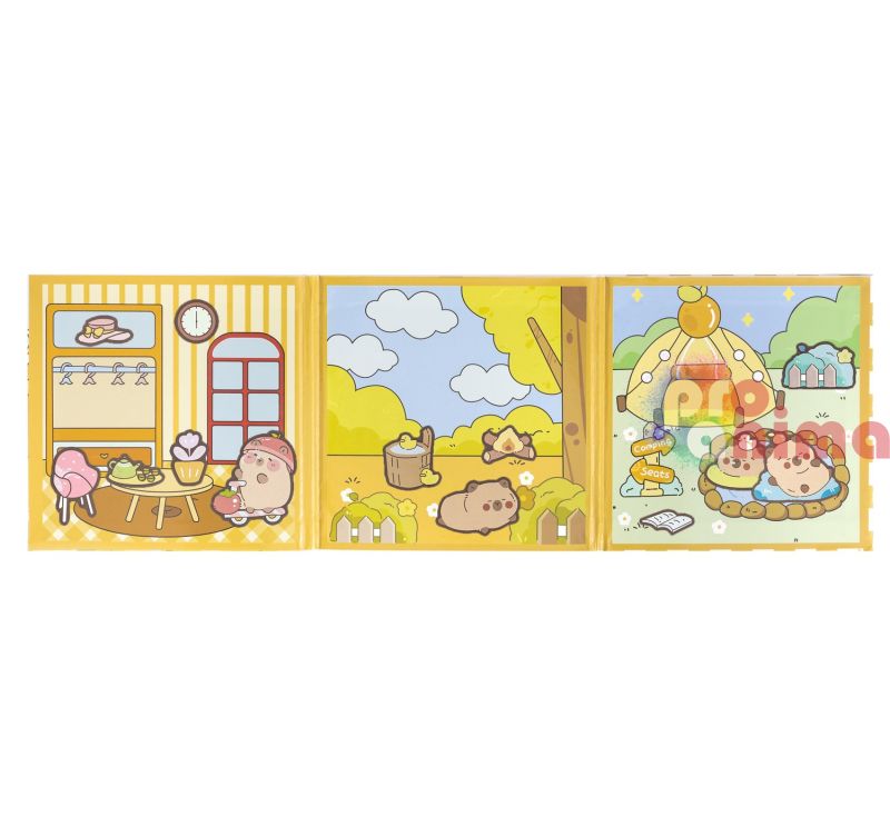 Книжката с капибара магнити стимулира въображението и креативността у малките деца, развива лигическото мислене и фината моторика.