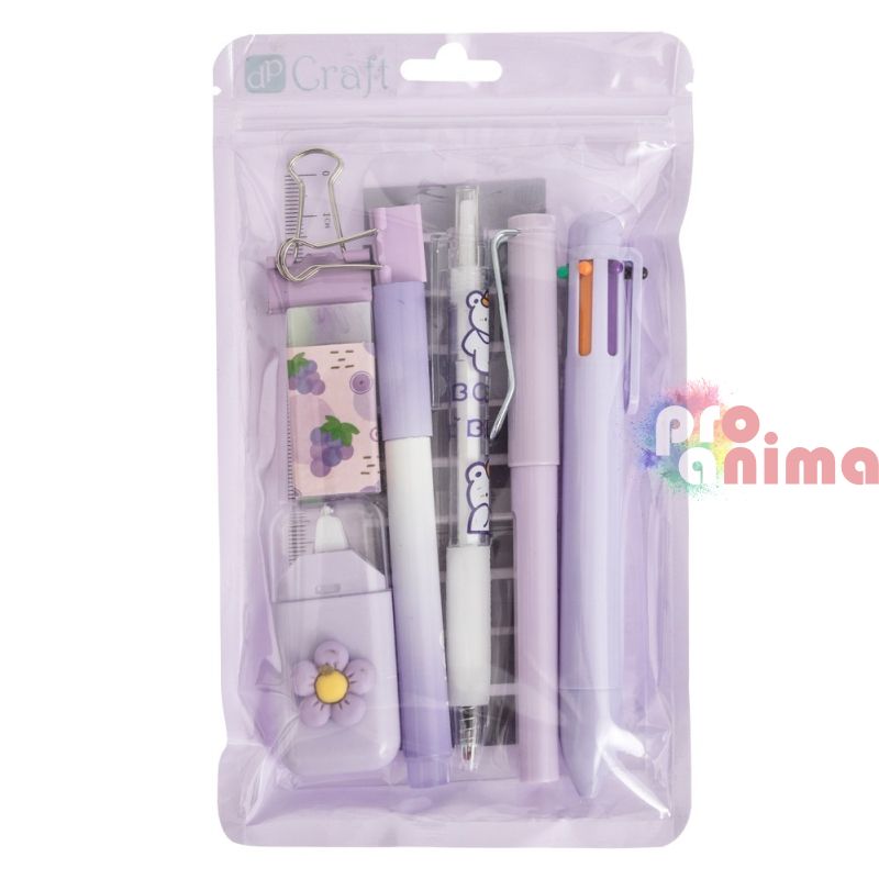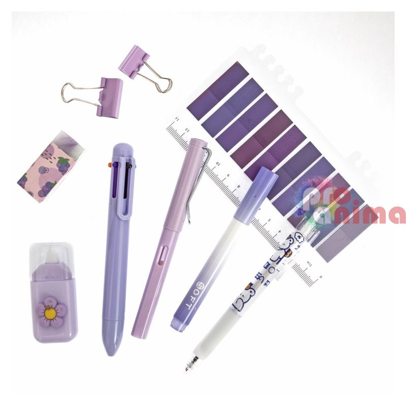 Стилен и практичен комплект от 9 бр. основни пособия в нежен пастелно лилав цвят, подходящ за училище, офис, университет или домашно бюро. Аксесоарите са леки, удобни и практични за ежедневна употреба.