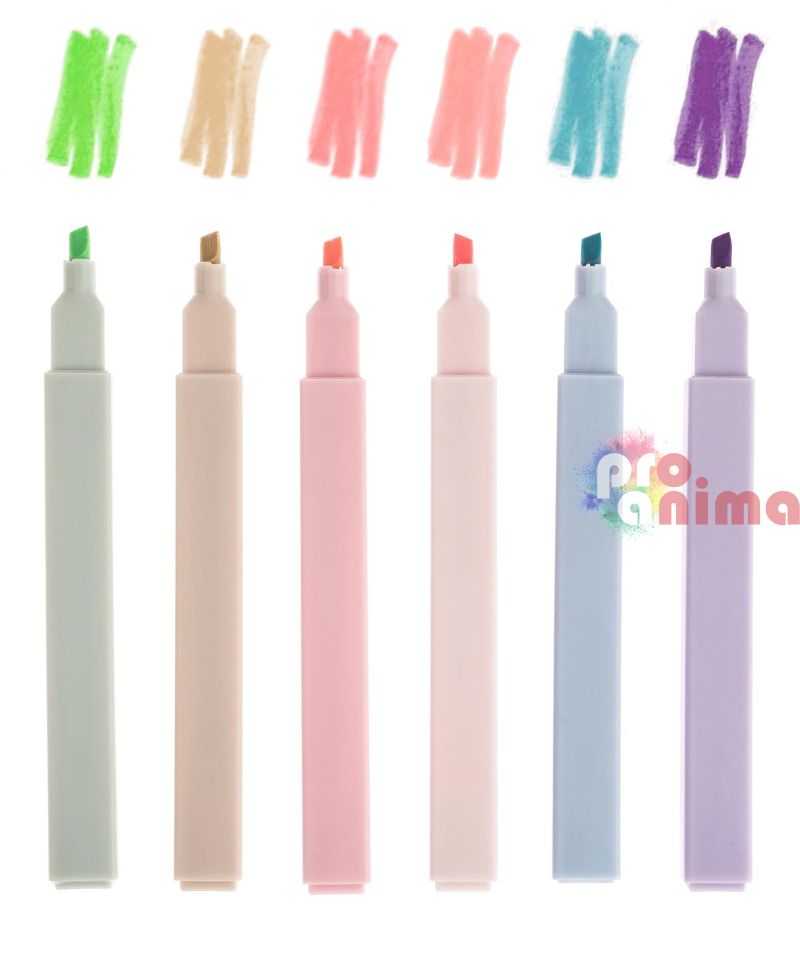 - 6 бр. текст маркери в меки пастелни цветове (син, бежов, лилав, шамфъстък, сьомга и розов).