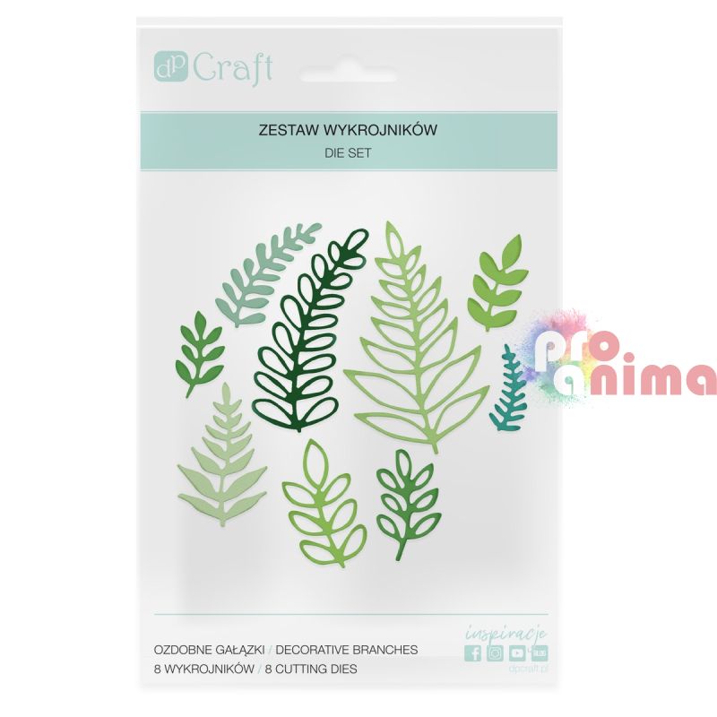 Комплект щанци за изрязване и релеф, с които можете да създадете декоративни клонки използвайки хартия (до 300 g/m2), картон или foam (гумирани листи). С тяхна помощ лесно ще изработите картички, албуми, кутии за подаръци, венци и др.