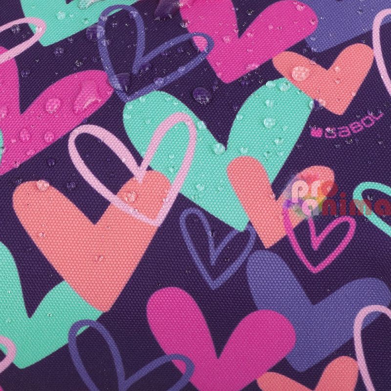 - Цвят: тъмнолилав с принт на сърца;