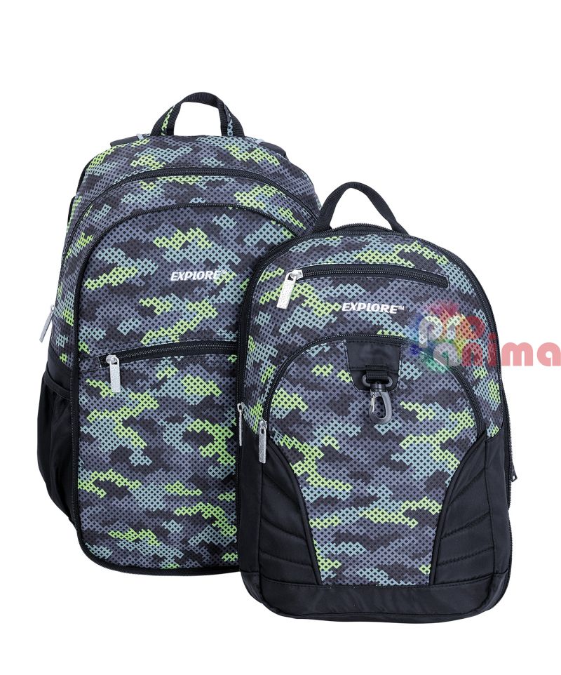 Ергономична ученическа раница за момче Explore 2 в 1 Neon Camouflage