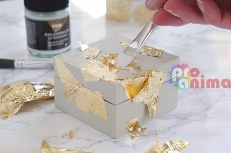 - Нанесете лепило за метално фолио върху повърхността, която ще декорирате;