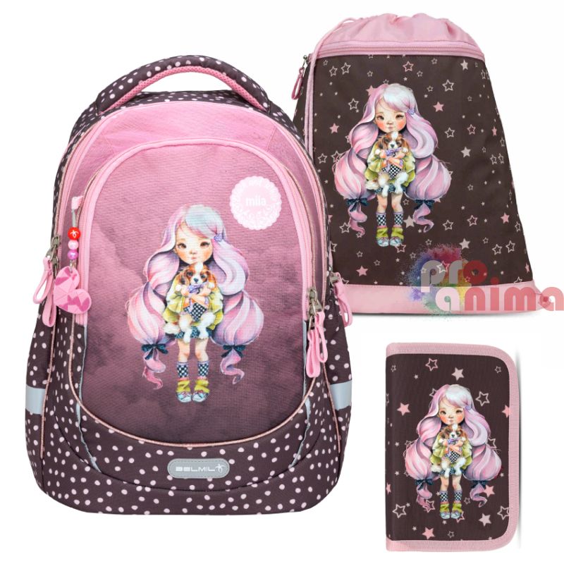 Комплект ученическа раница, твърд несесер и торба за спорт Belmil Miia Rose, със страхотните илюстрации на Ивайла Стоева (Miia).