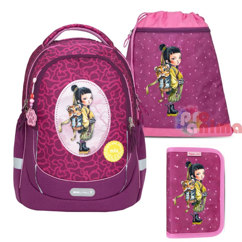 Комплект ученическа раница, твърд несесер и торба за спорт Belmil Miia Yuki, със страхотните илюстрации на Ивайла Стоева (Miia).