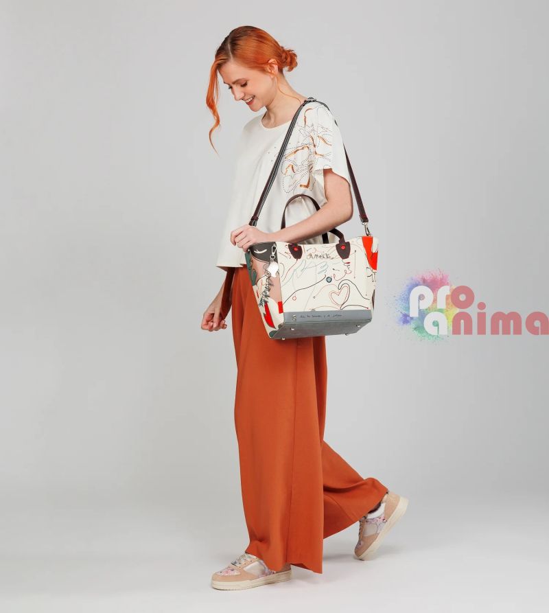 Дамска чанта от линията на Anekke Alma Ole, повлияна от испанския темперамент, често изразяван с възклицания като "ole". Ръце, ветрила и точки са едни от основните принтове на колекцията, вдъхновени от стила на Хуан (Жуан) Миро и фламенкото.