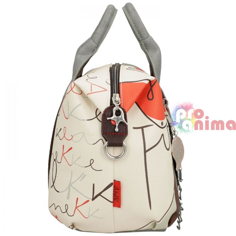 Дамска чанта от линията на Anekke Alma Ole, повлияна от радостта на испанския характер, често изразяван с възклицания като "ole". Ръце, ветрила и точки са едни от основните принтове на колекцията, вдъхновени от стила на Хуан (Жуан) Миро и фламенкото.