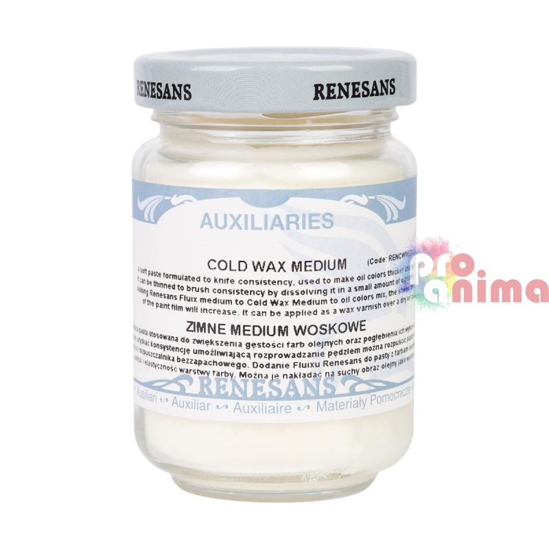 Медиумът "студен восък" Renesans представлява мека паста, предназначена за увеличаване плътността на маслените бои и задълбочаване на ефекта на матов завършек. За да получите консистенция, която да се разнася с четка, можете да разтворите пастата в малко количество разтворител. Също така, медиумът студен восък е подходящ за нанасяне върху вече готова картина като восъчен лак.