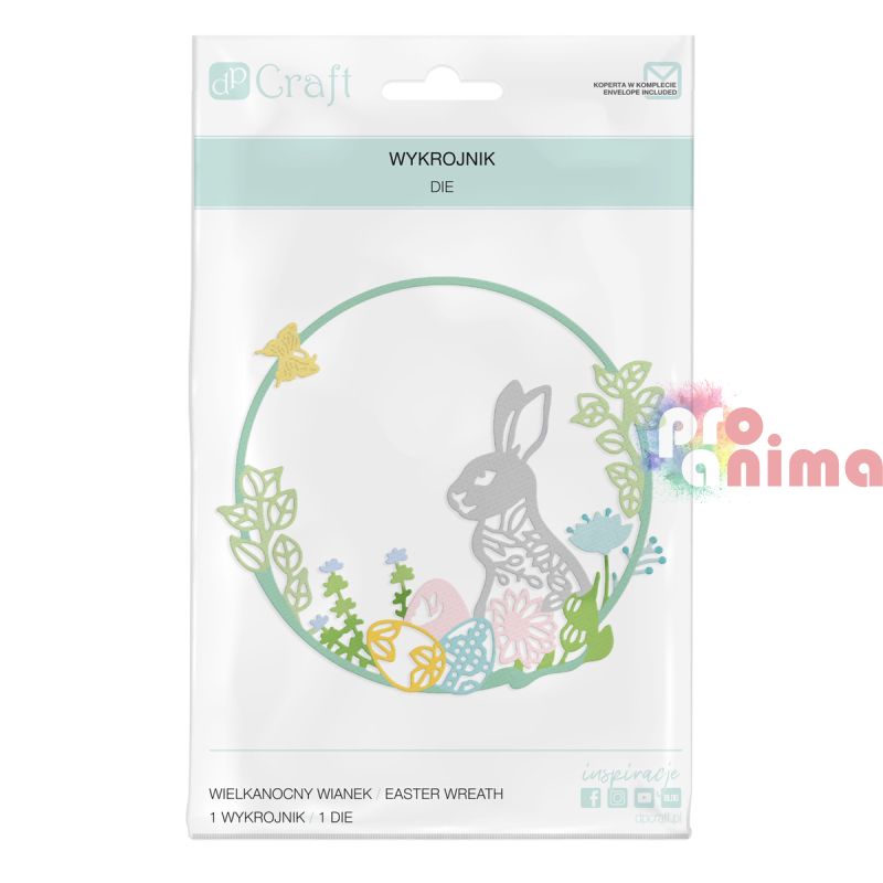 Шаблон за изрязване и релеф (щанца) DP Craft, Великденски венец със зайче, 10 x 9.4 cm